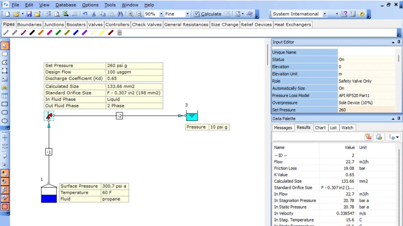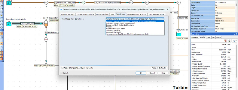 FluidFlow operates with integrated modules (Liquid, Gas, Slurry, Two-Phase) within a single software environment, allowing systems with multiple fluid types in one file. No module switching is required – the software automatically detects fluid phases based on operating conditions.