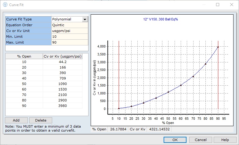 - Aim for optimal valve travel. When a valve is sized correctly, the range of operation will correspond well to the control range of the valve. Some industry literature recommends travel at normal flow should fall within 50 to 70 percent opening angle. Travel at maximum flow should fall below 90 percent whereas travel for minimum flows should be above 20 percent open to avoid erosion of the trim. When modelling a control valve in FluidFlow, the software enunciates a warning message if the valve position falls outside of an optimal operating range. Users can also adjust the desired settings for minimum and maximum valve positions. This helps prompt the designer into considering valve position for the given design operating conditions. Ultimately, it also helps the designer make a better and more appropriate valve selection for the application in hand.