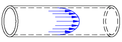 Laminar flow is therefore characterized by concentric layers traveling in parallel along the pipe length where the highest velocity is found in the pipe centreline and gradually decreases outwards towards the inner surface of the pipe.