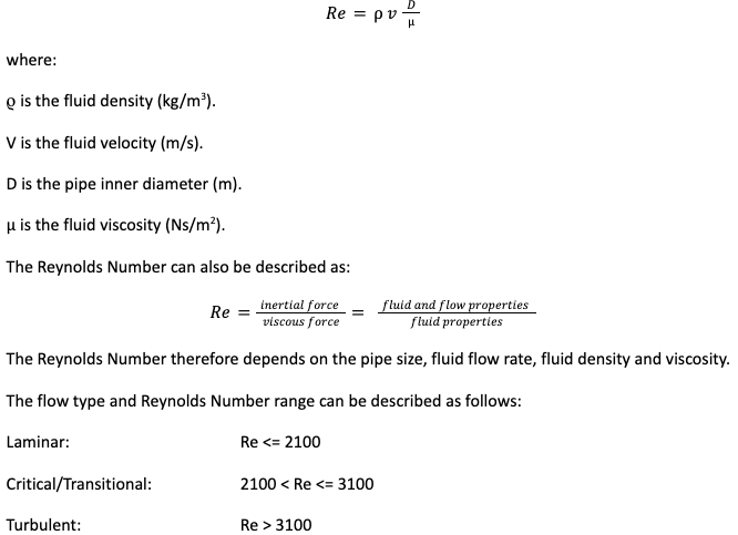 When analysing flow conditions in pipework, a Reynolds Number in the range of up to around 2100 is considered to be laminar and above 3100 is said to be turbulent. The range between 2100 and 3100 is referred to as the critical or transitional region. Estimating the friction factor in this critical region is complex as it may not be obvious if the flow is laminar or turbulent. The critical region is characterised by a combination of properties of the laminar and turbulent flow regimes.