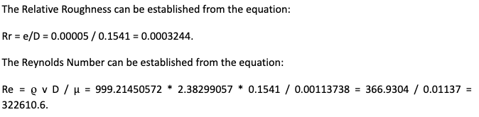 Figure 4: Calculation of Reynolds Number & Friction Factor.
