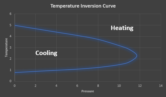The inversion temperature represents the temperature of a gas at which a reduction in pressure causes no temperature change. Above this temperature, the gas heats on expansion and below this temperature, the gas cools on expansion. When a real gas expands through a throttling device, the gas temperature may either increase or decrease depending on the initial gas pressure and temperature. Figure 1 provides an illustration of a typical temperature inversion curve.