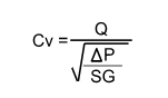 The first step in finding the optimum size of a control valve is to determine the Cv value, defined as the volumetric flow of 60°F water in gallons per minute that can pass through the valve at a pressure drop of one (1) psi. The fastest way to calculate the Cv value is by using the following formula (Equation 1):