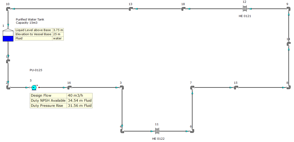 A baseline model was developed for the system and solved at a design flow rate of both 40 and 56 m3/h. Figure 1 provides an overview of the model.